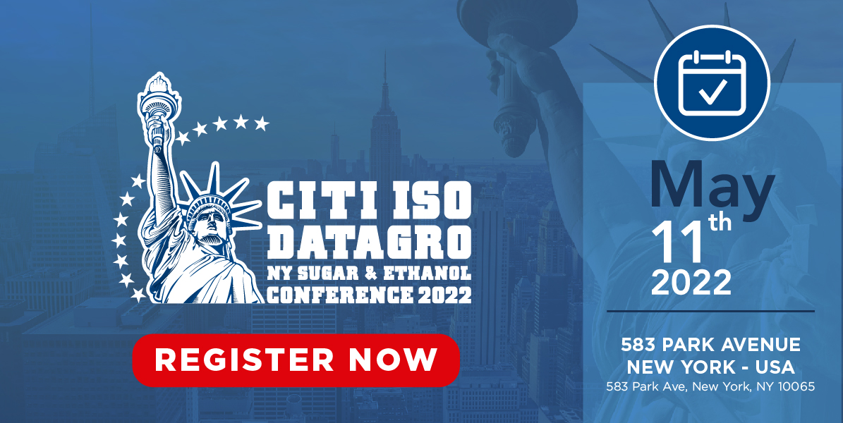 Aiming to discuss the main issues of the global Sugar and Ethanol industries, the International Sugar Organization (ISO) alongside CITI and DATAGRO will hold the 15th edition of the CITI ISO DATAGRO New York Sugar & Ethanol Conferenceon May 11th, 2022 at the 583 Park Avenue, NY 10065, USA.