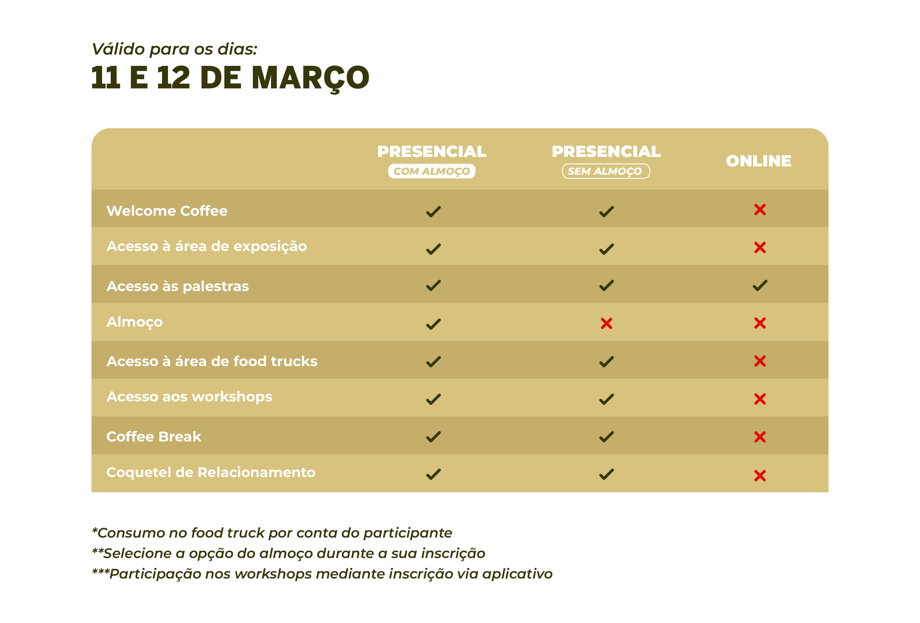 • *Os participantes podem escolher entre duas opções de ingresso: com ou sem almoço incluso.