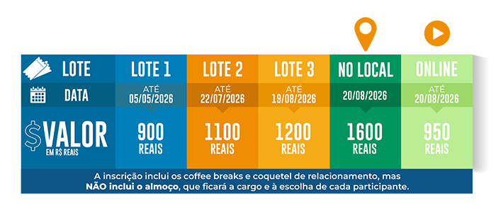 • Cada inscrição garante o crachá obrigatório e o material de participação;